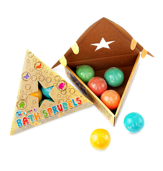 Meet our Bath Sprudels that make bath time a great time! After dropping the Sprudel in hot water, it fizzes, slowly releasing a lovely fragrance (using food-grade ingredients) into the air as it changes the color of your bath water. Hidden inside is a cute sponge bean character that will reveal itself.